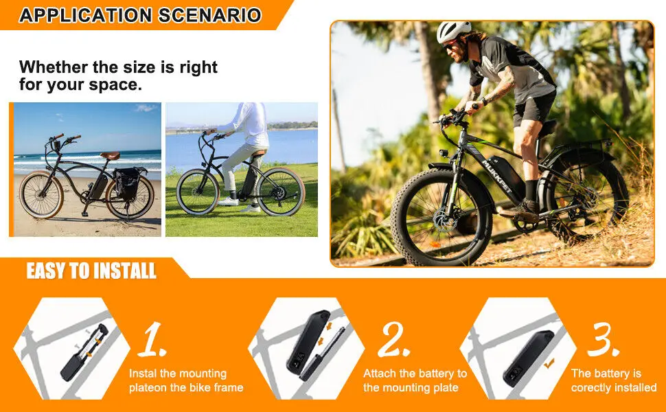 Meet multiple needs: 36V lithium battery is compatible with motorcycles, electric scooters, tricycles, folding bikes, city bikes, and balance bikes. Please check and confirm your vehicle voltage before placing an order to choose the battery that suits you.