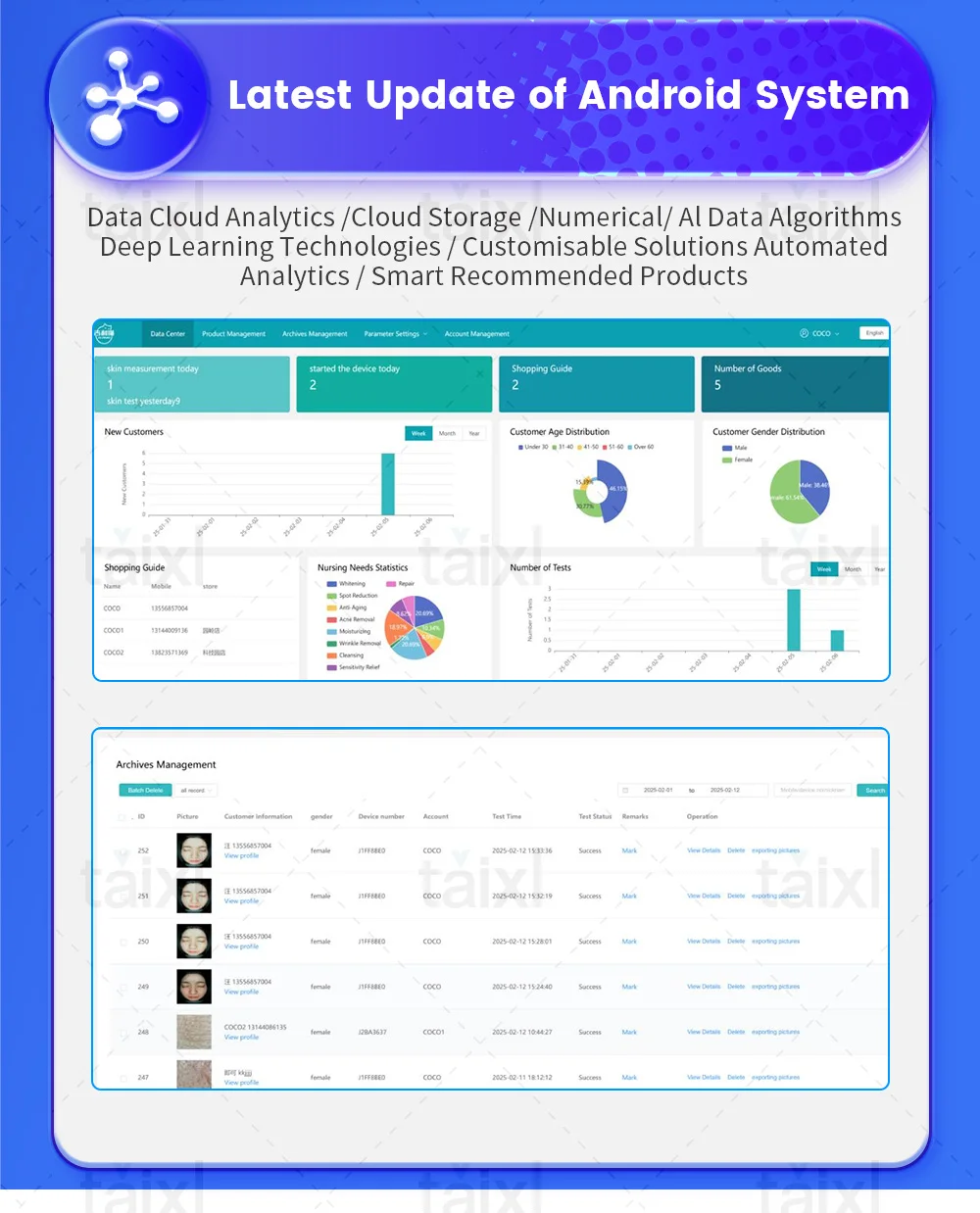 and deep skin indicators of the facial skin using deep learning algorithms.