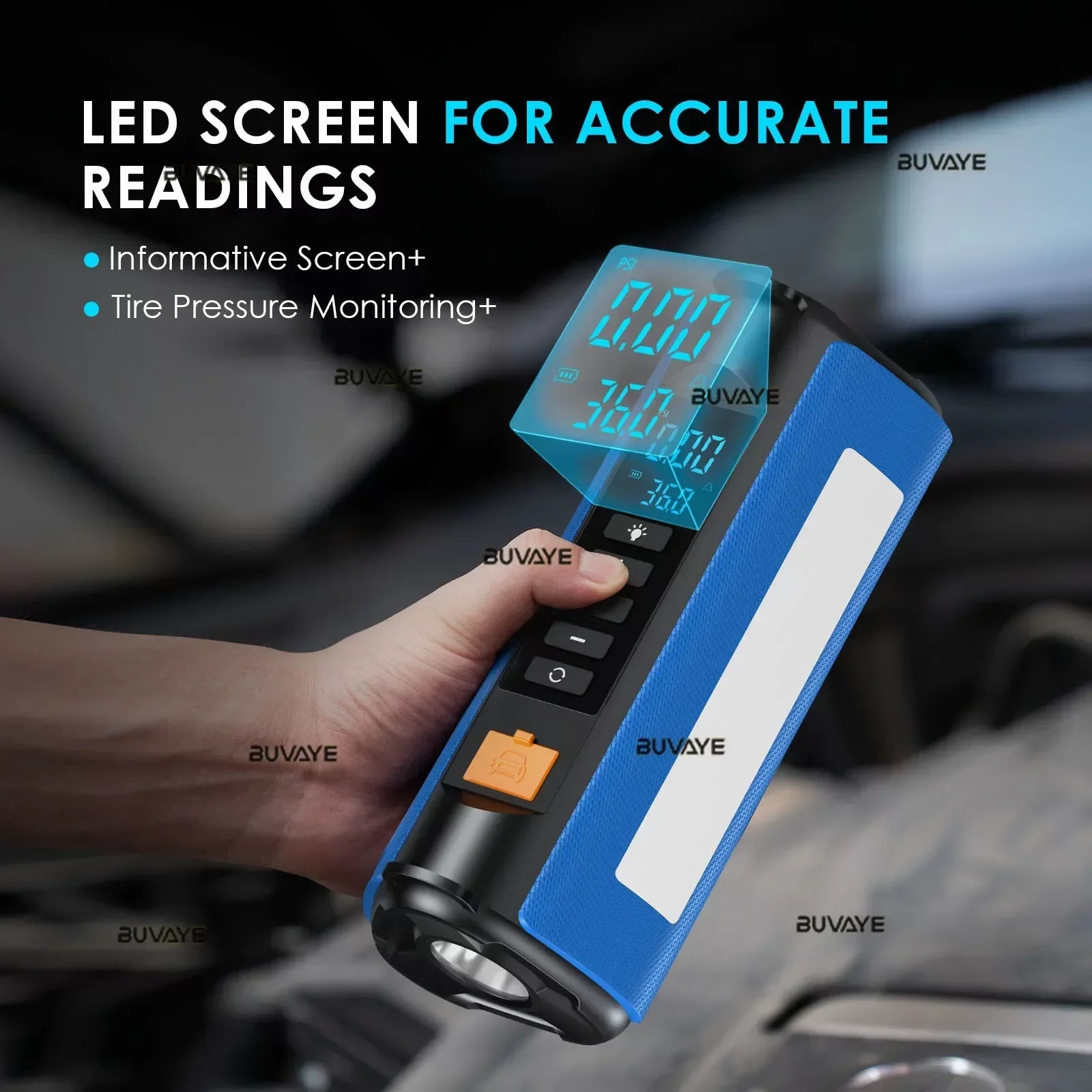 BUVAYE Car Jump Starter Air Pump Outdoor Portable Power Lamp Portable Air Compressor Multifunctional Tire Inflator with EVA Bag