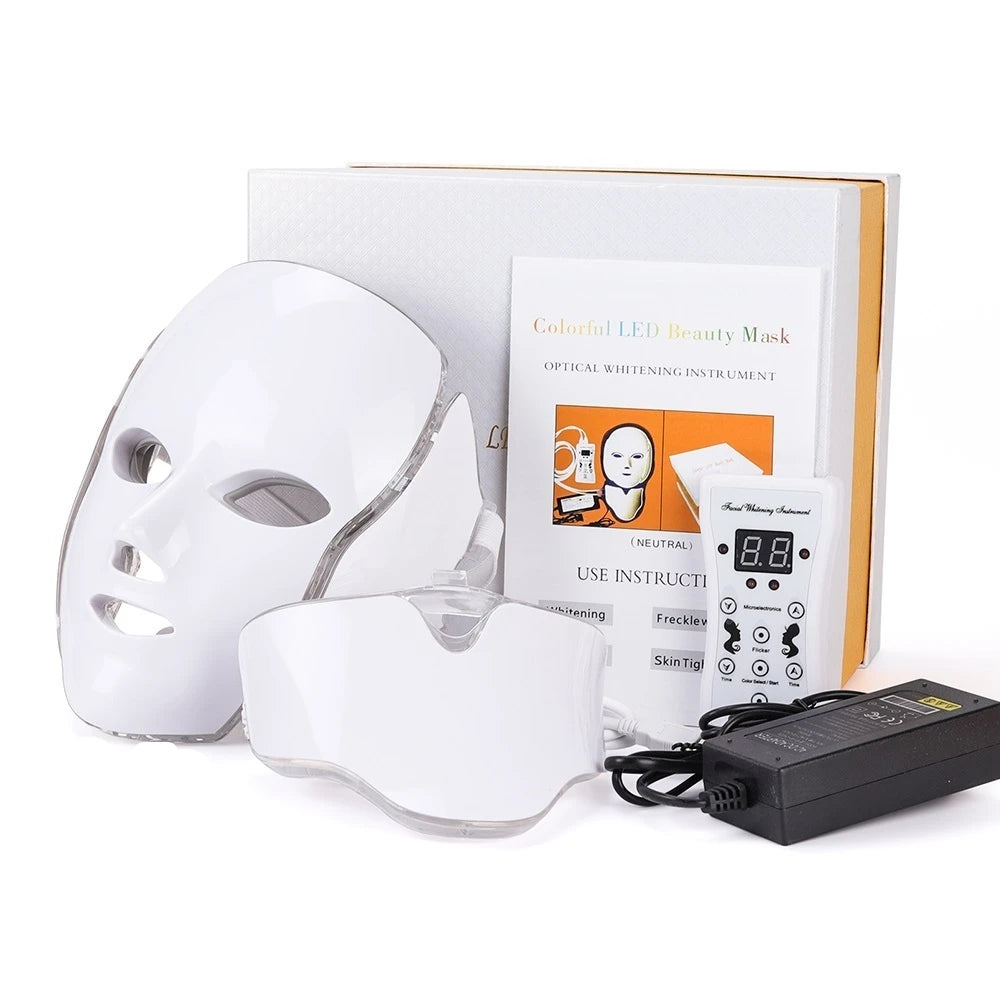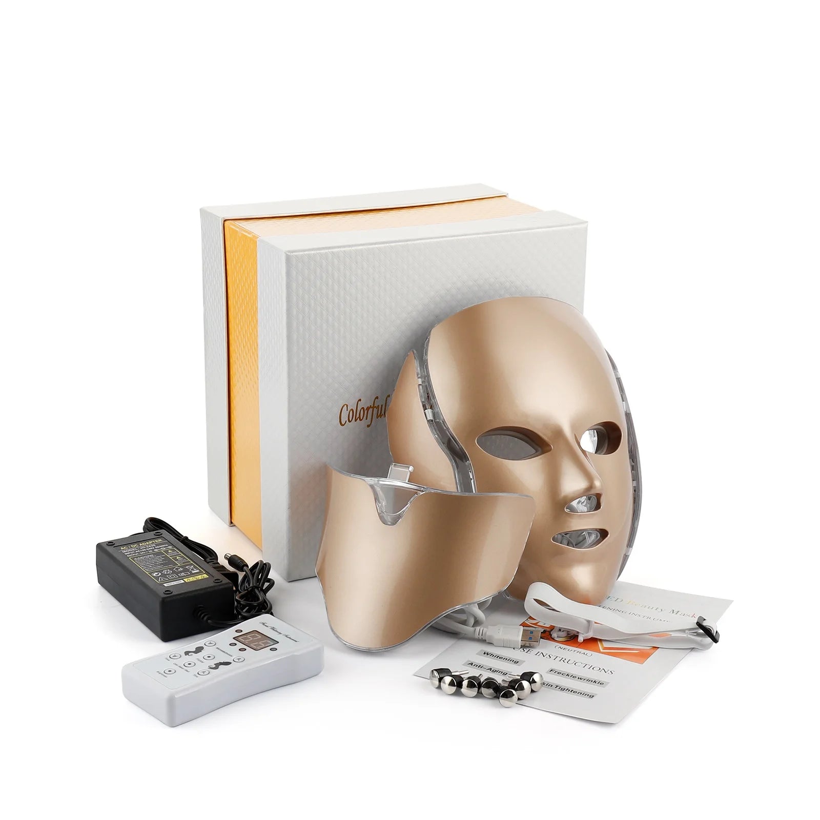 Foreverlily 7 Colors Light LED Facial Skin Care Mask With Neck Skin Rejuvenation Treatment Beauty Anti Acne Therapy Whitening