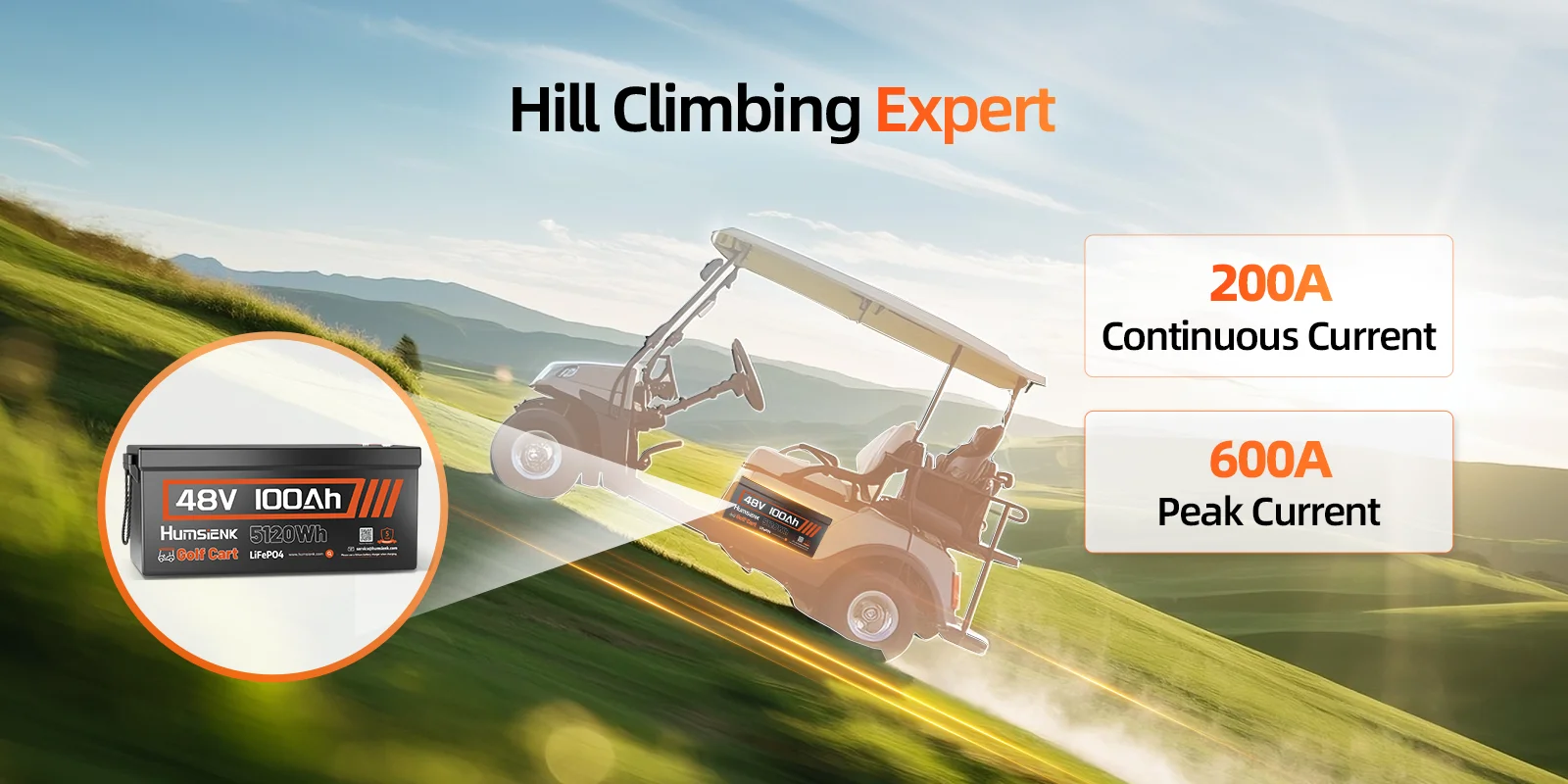 HumSienk LiFePO4 Battery Packs 48V 100Ah Specially Designed For Golf Cart 200A BMS Robust 5120Wh Smart Bluetooth Monitor