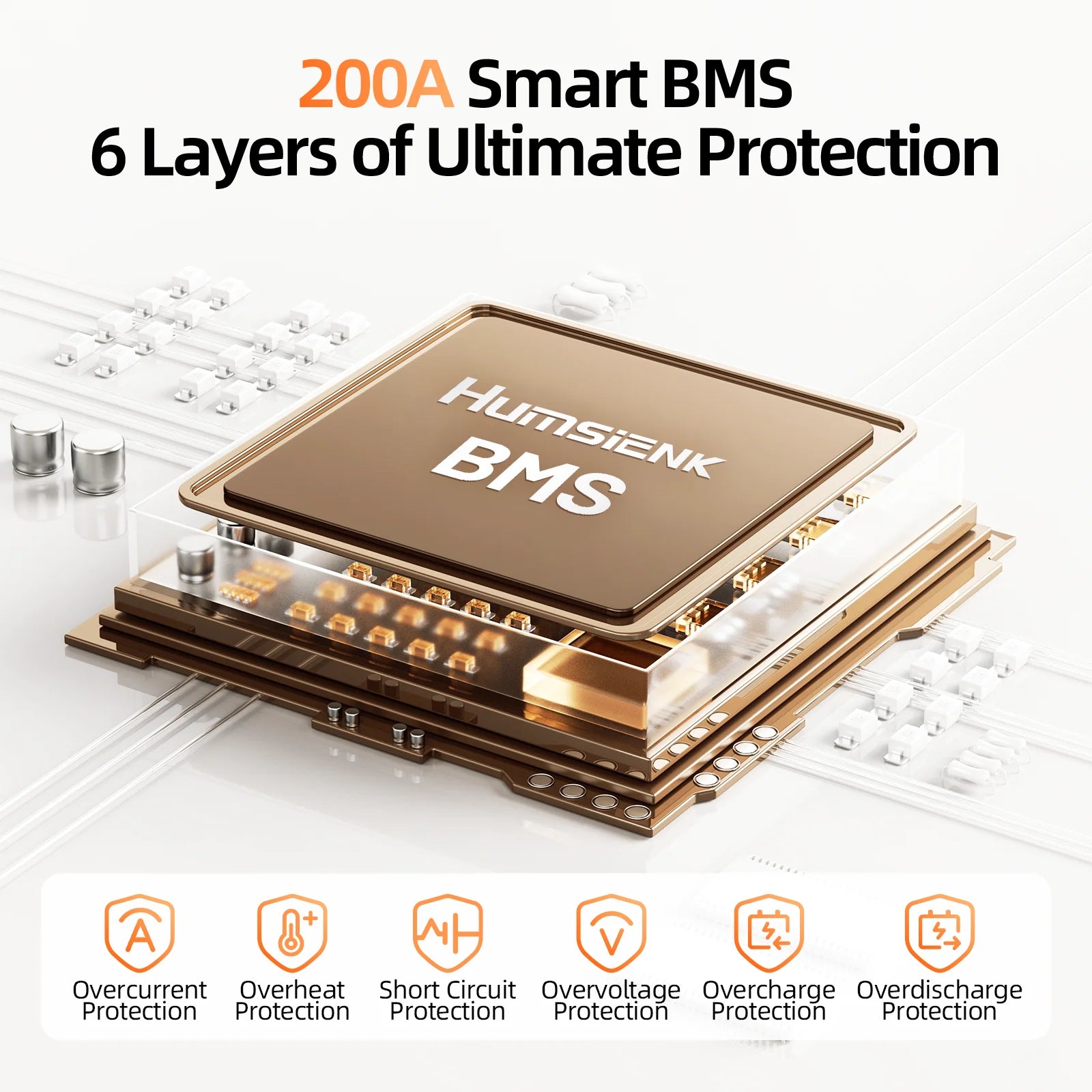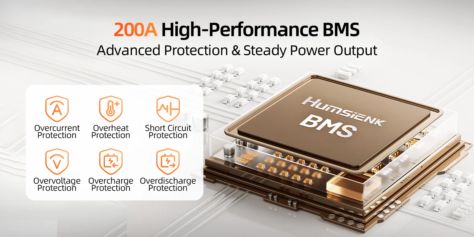Engineered for secure operation, this battery features a built-in 200A Battery Management System (BMS)