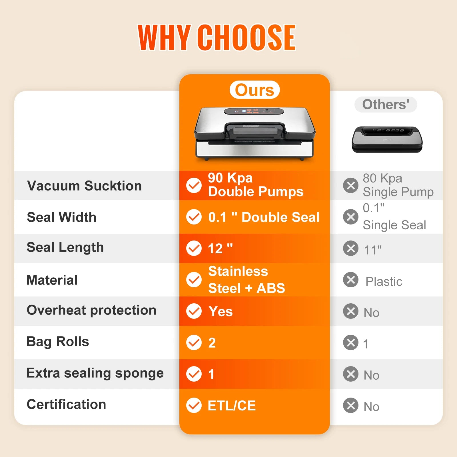 Introducing SucceBuy vacuum sealer machine! It will become your ultimate kitchen companion that keeps your food fresh for longer! With a special cooling system, it's built to handle continuous and repetitive use without overheating. Say goodbye to freezer burn and hello to perfectly preserved food!