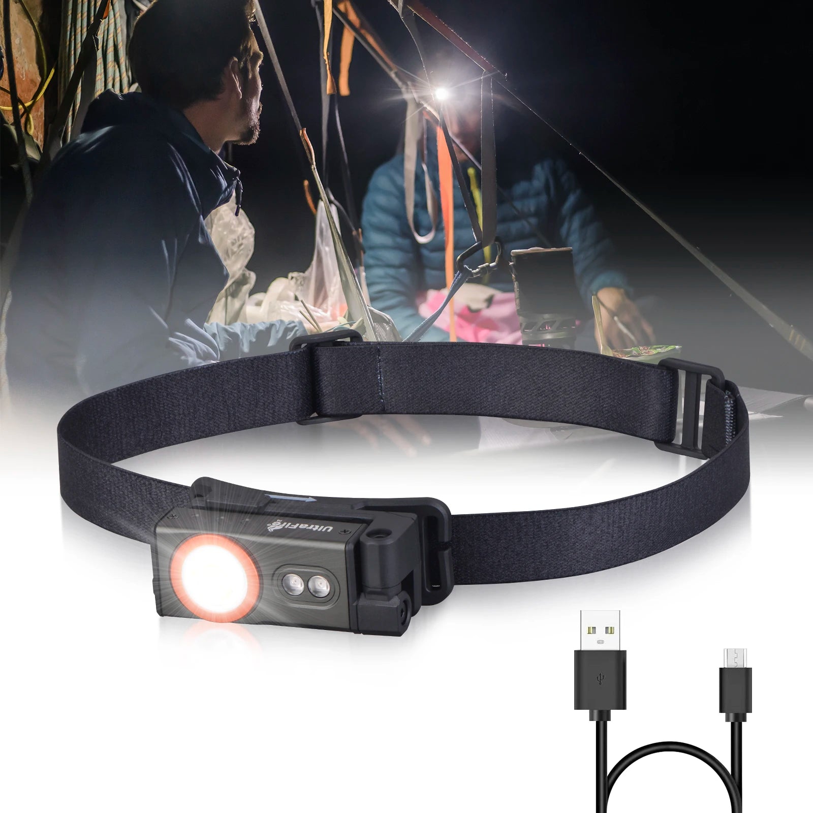 UltraFire P4 EDC Headlamp 5 Modes Powerful Head Flashlight USB C Rechargeable Red Light Headlight with Magnet for Outdoor Hiking